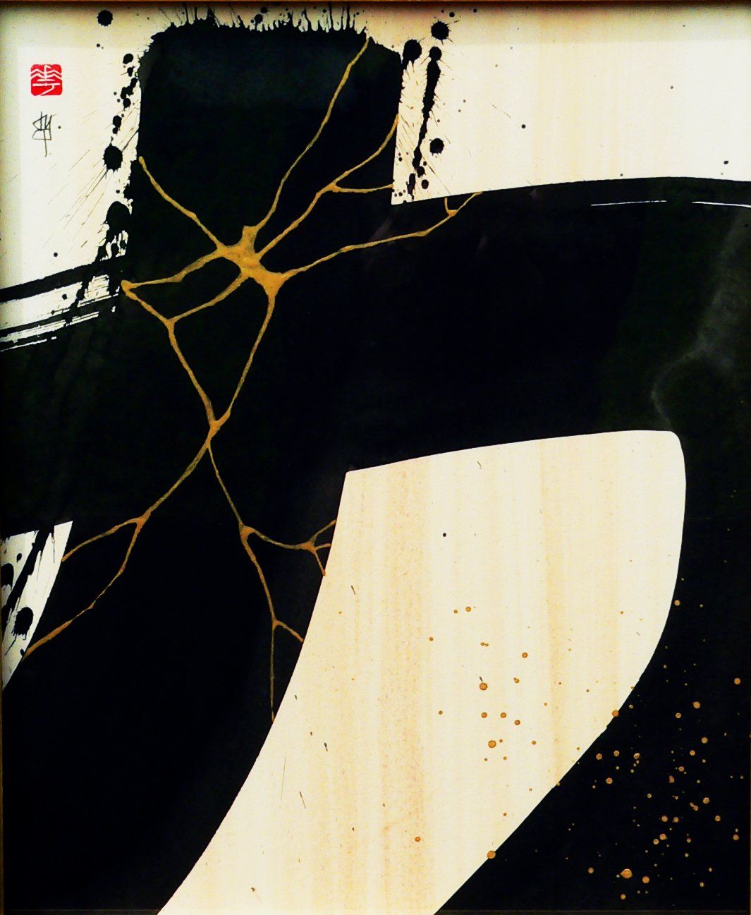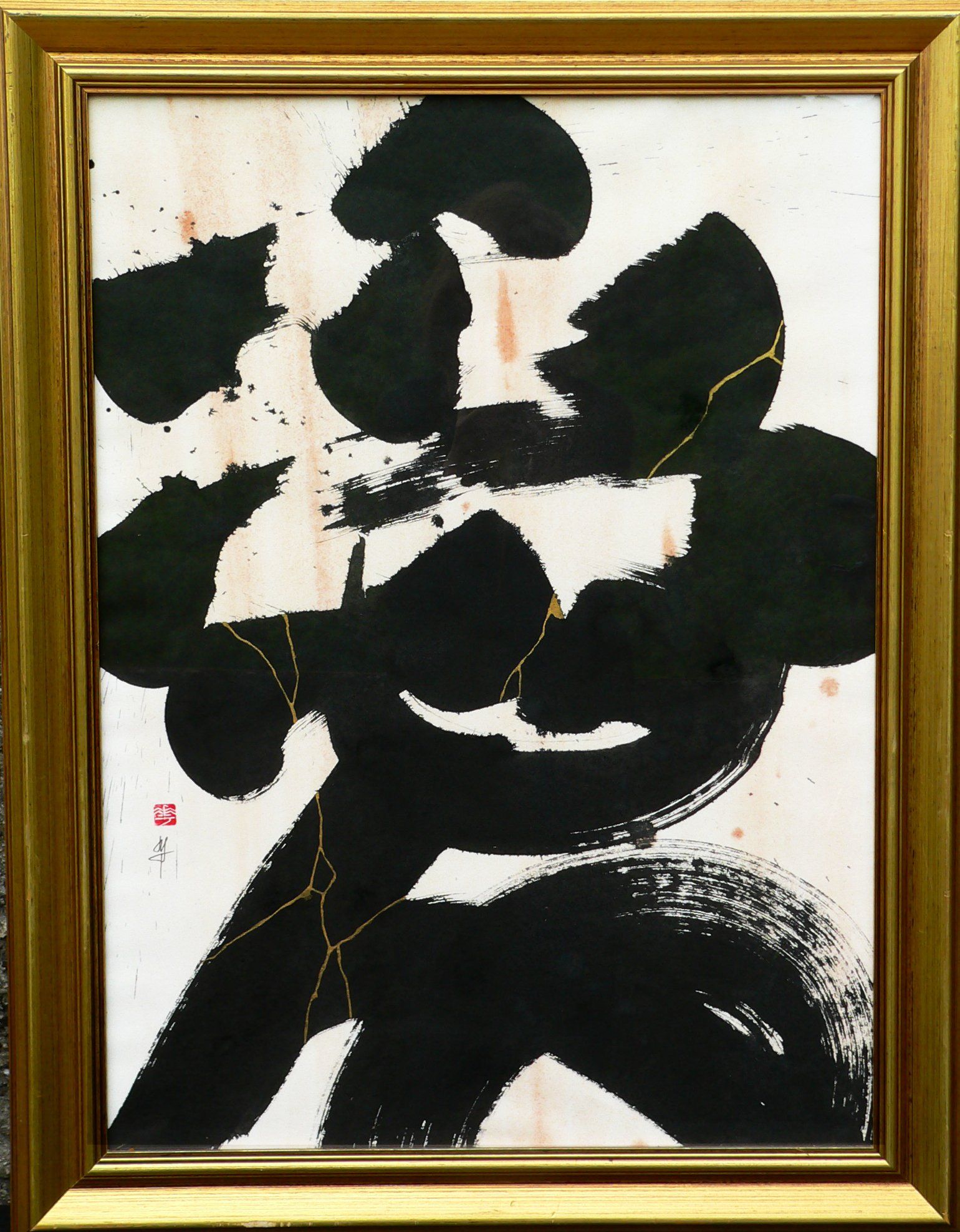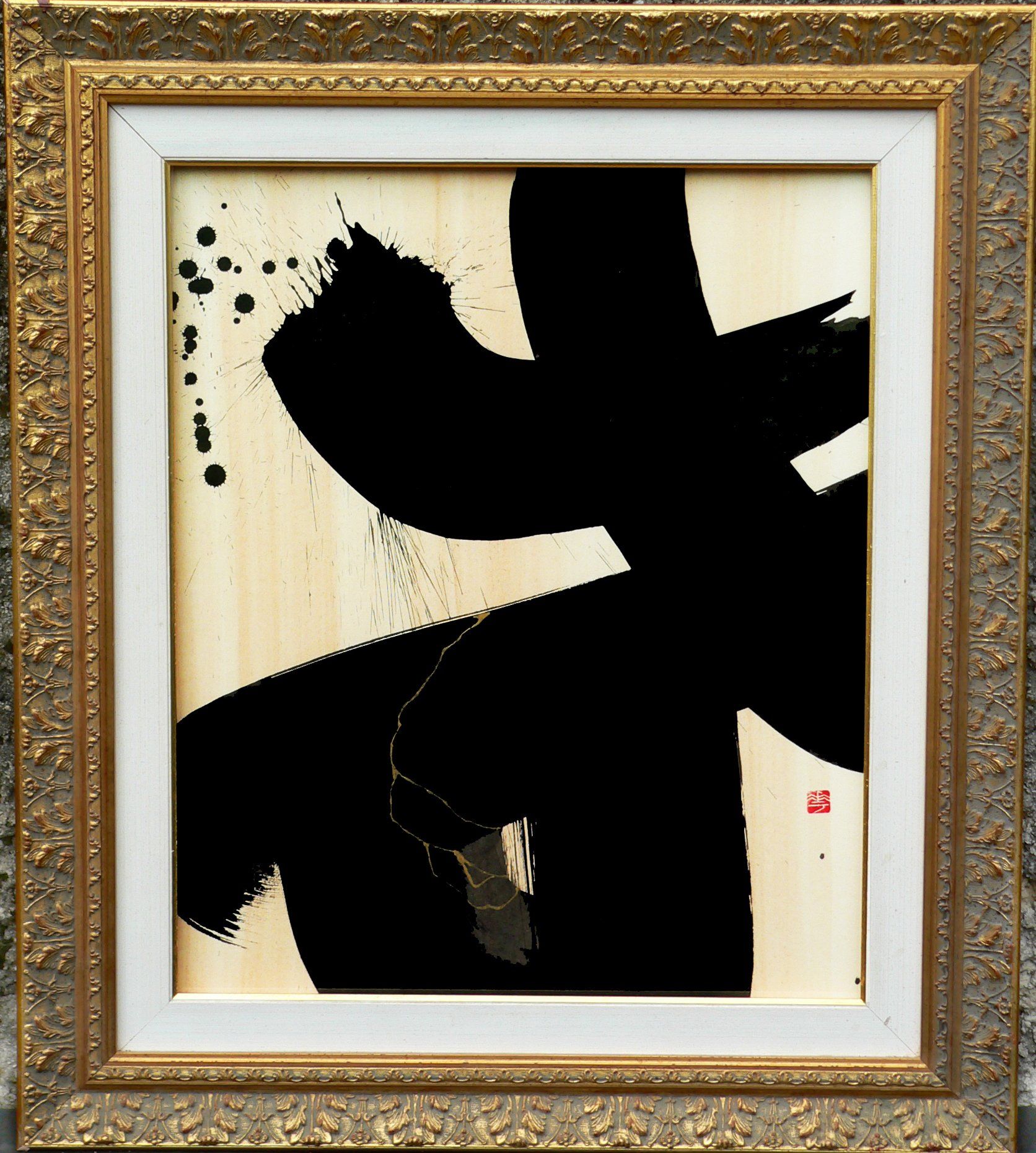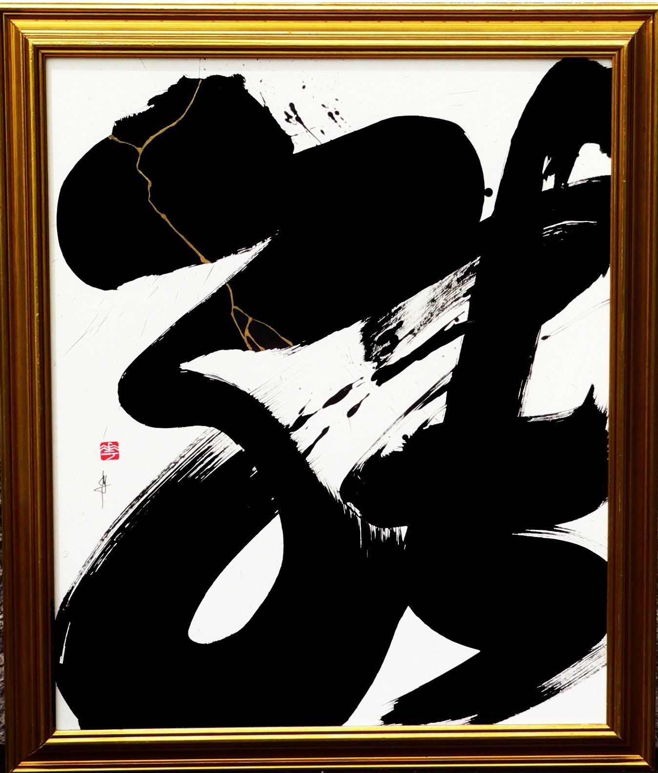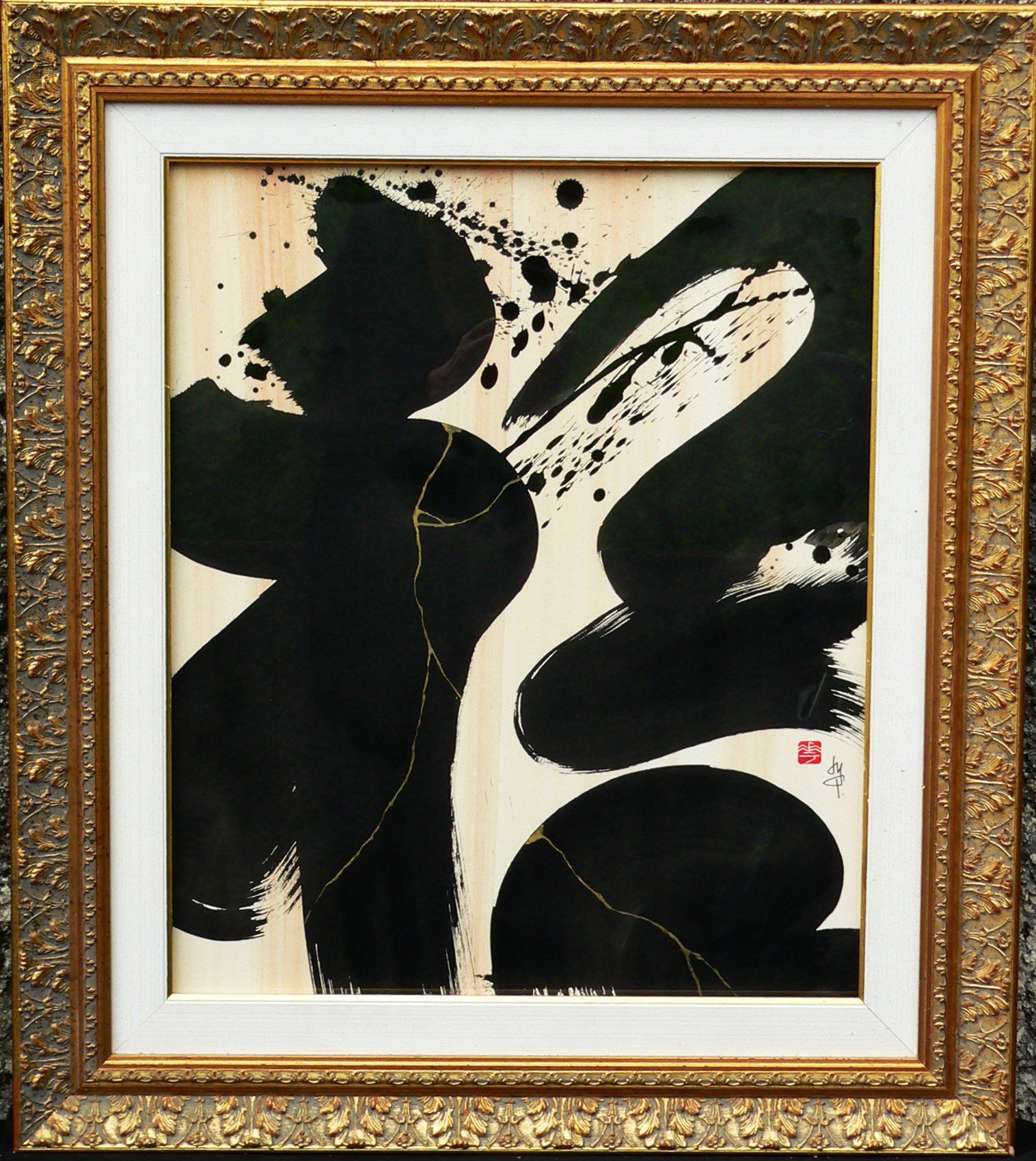 En 2020, Masha débute la série “Calligraphie Kintsugi”, appliquant les nervures d’or réparatrices aux sujets calligraphiés. Couleur mystique, faisant écho aux décors d’or des cathédrales orthodoxes de son enfance, l’or est pour