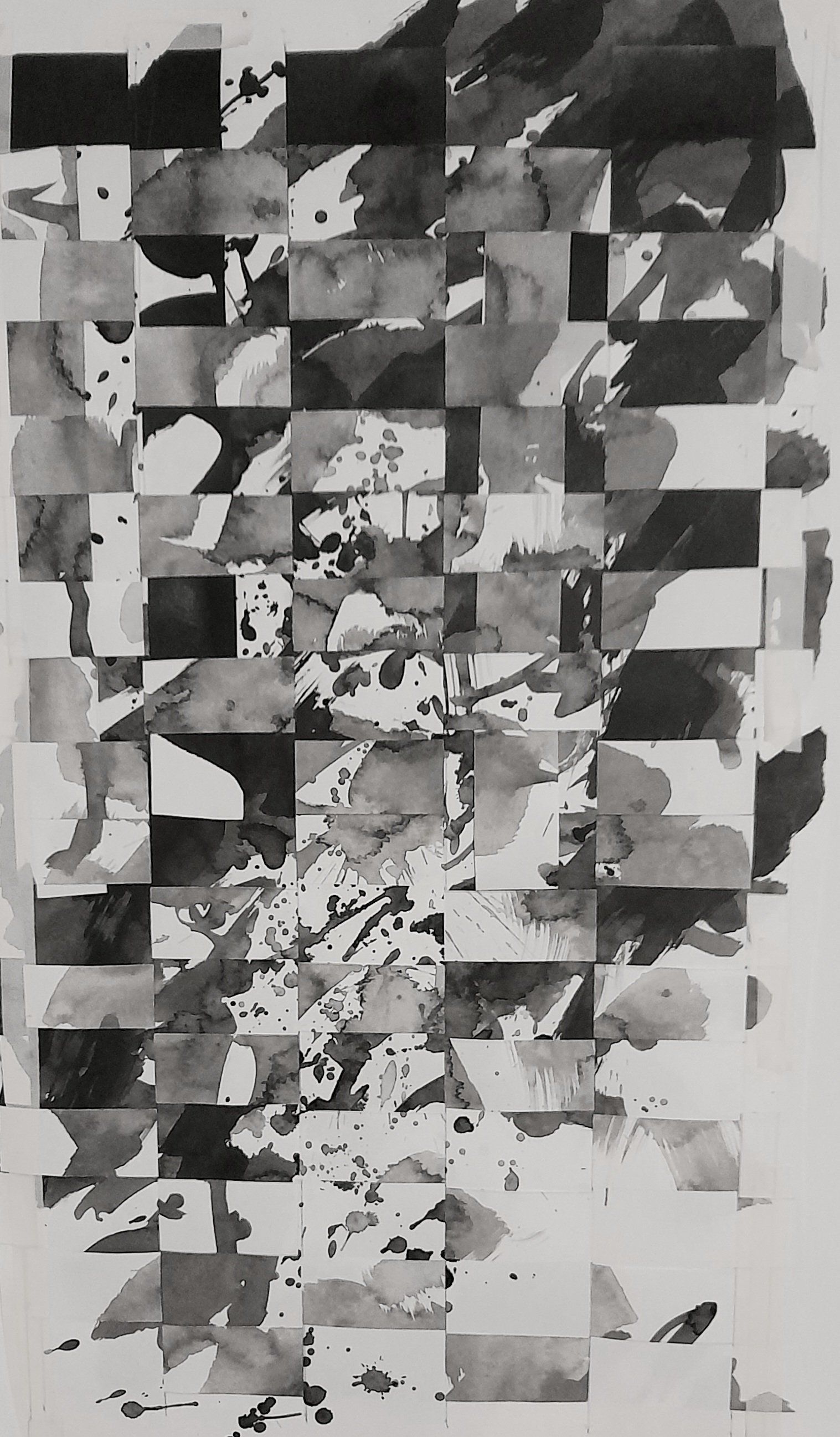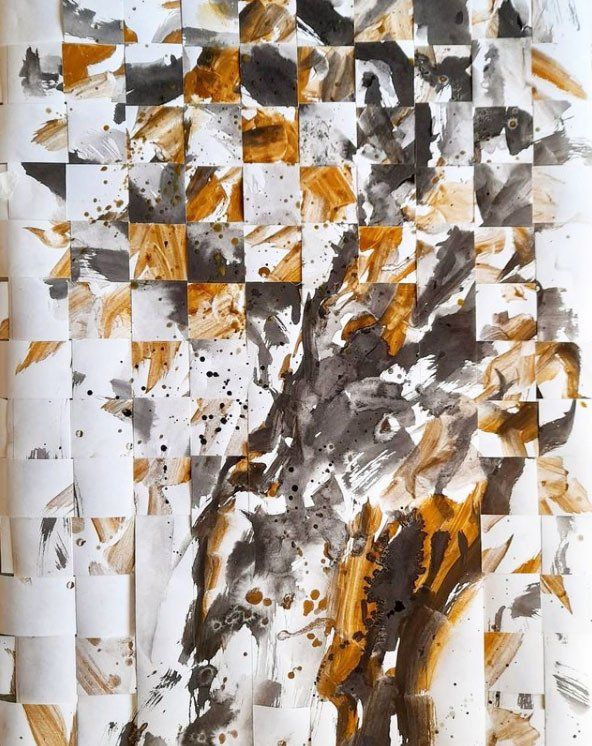 La série de calligraphies et de peintures tressées est inspirée de l’art japonais du tressage de bambou, le Takezaiku .