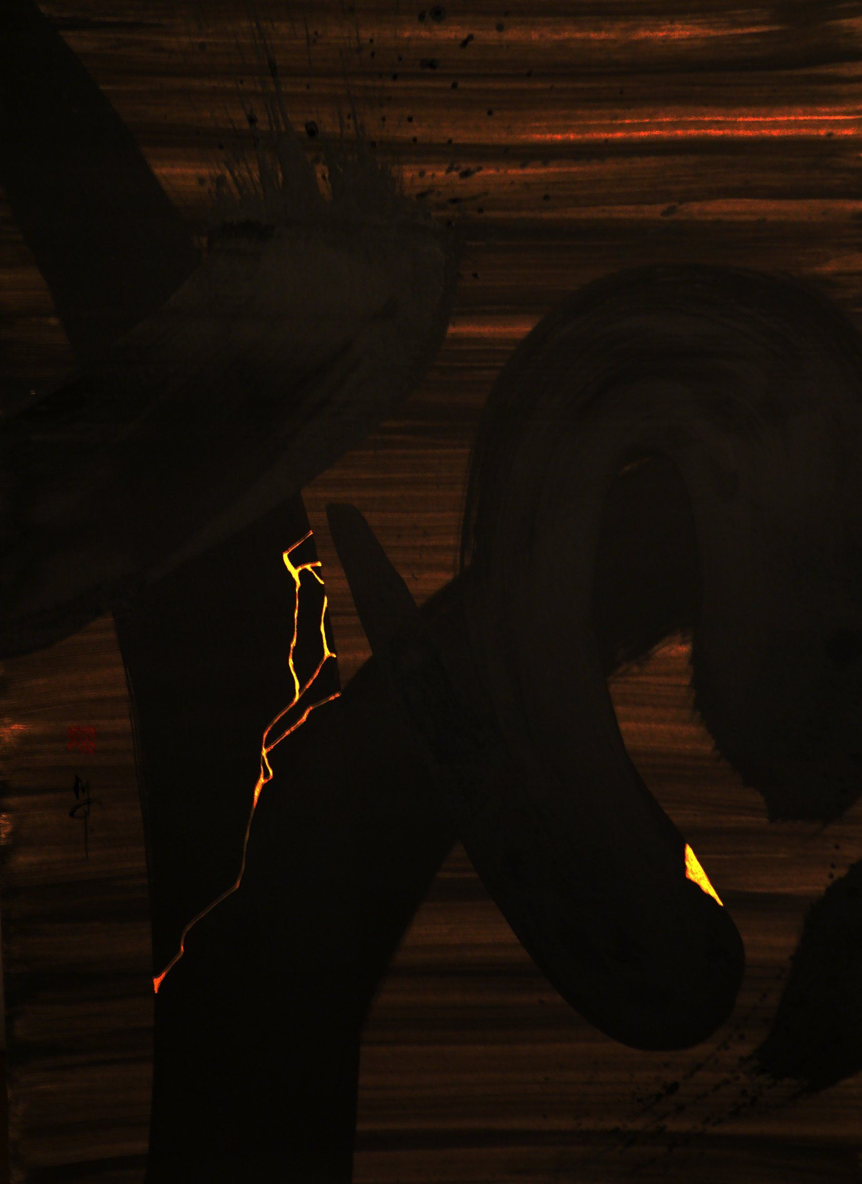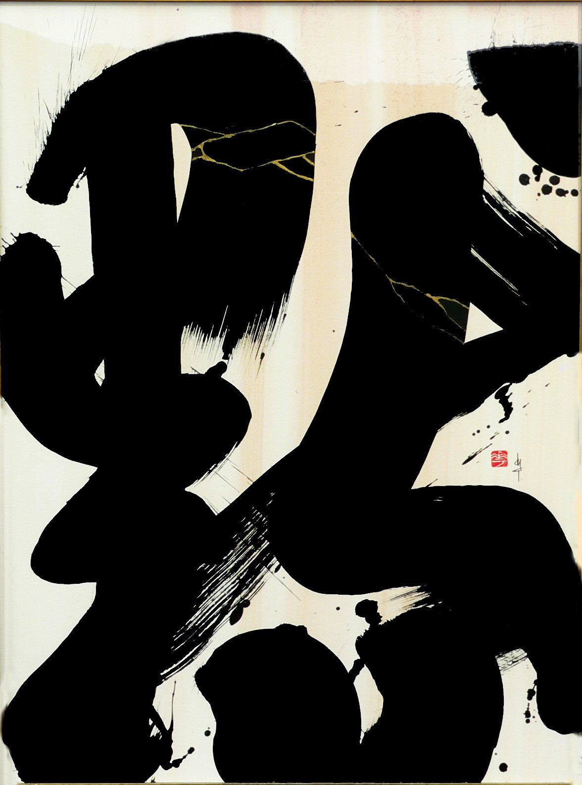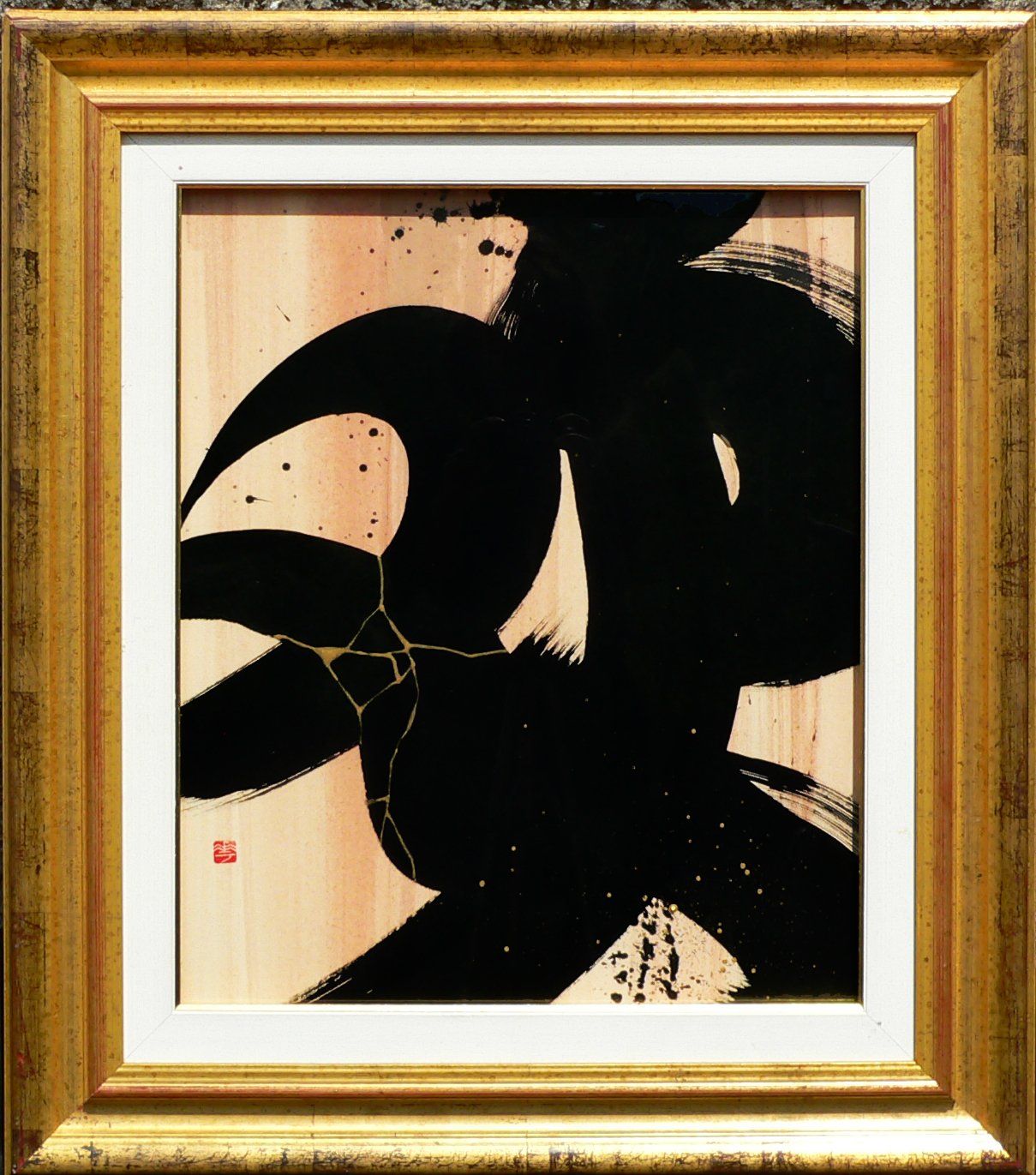 En 2020, Masha débute la série “Calligraphie Kintsugi”, appliquant les nervures d’or réparatrices aux sujets calligraphiés. Couleur mystique, faisant écho aux décors d’or des cathédrales orthodoxes de son enfance, l’or est pour